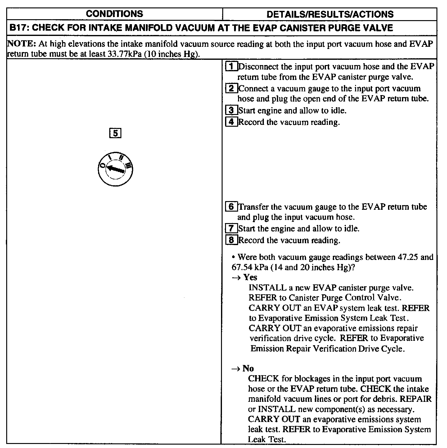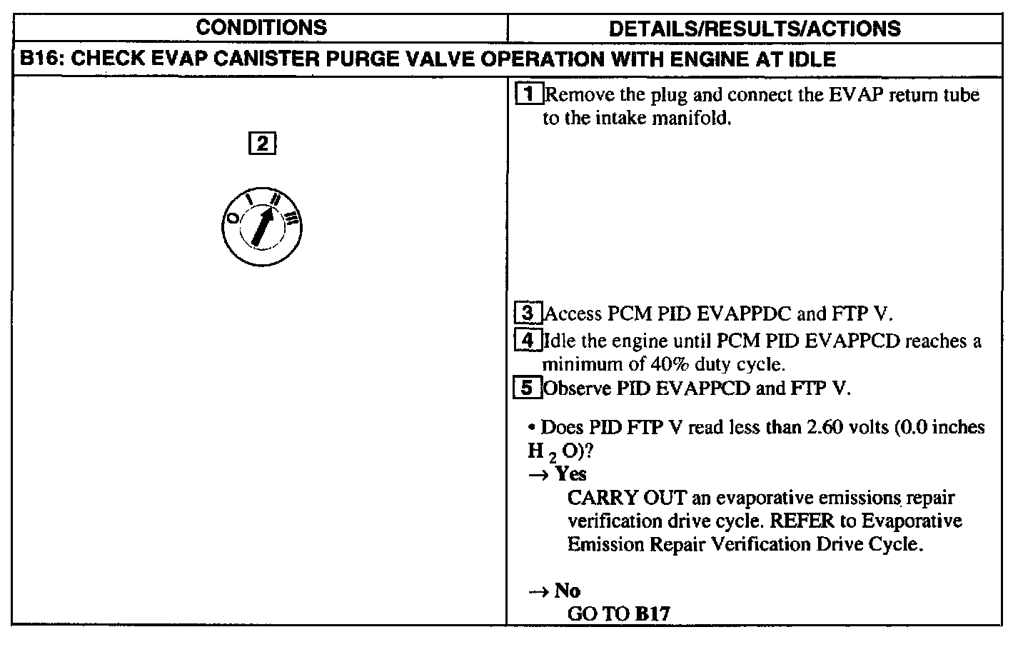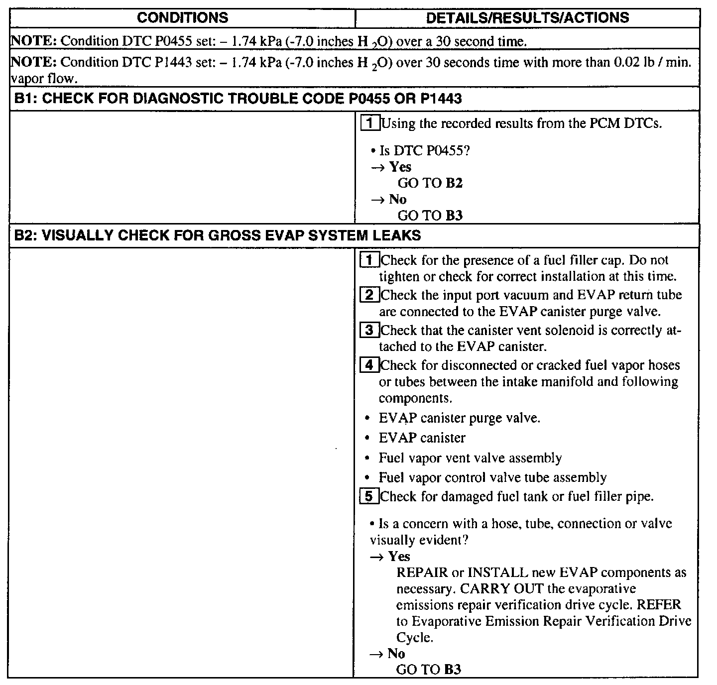 Test B: DTC P0455/P1443 No Flow Detected In System