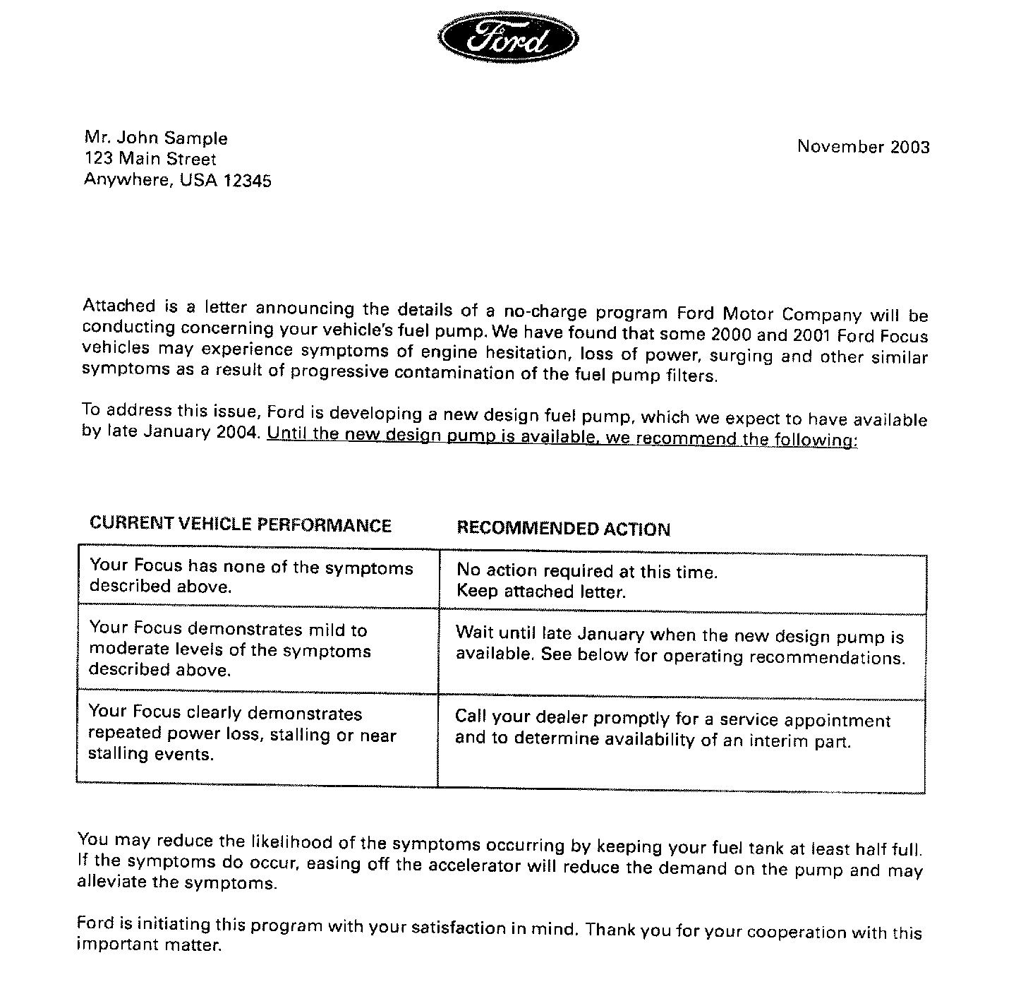 Recall - Fuel Delivery Module Defect