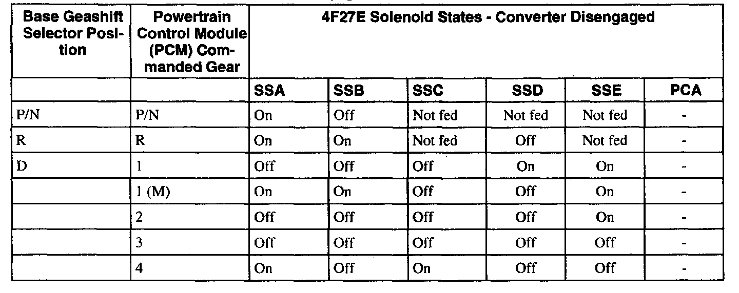 Solenoid Operation Chart - Converter Disengaged