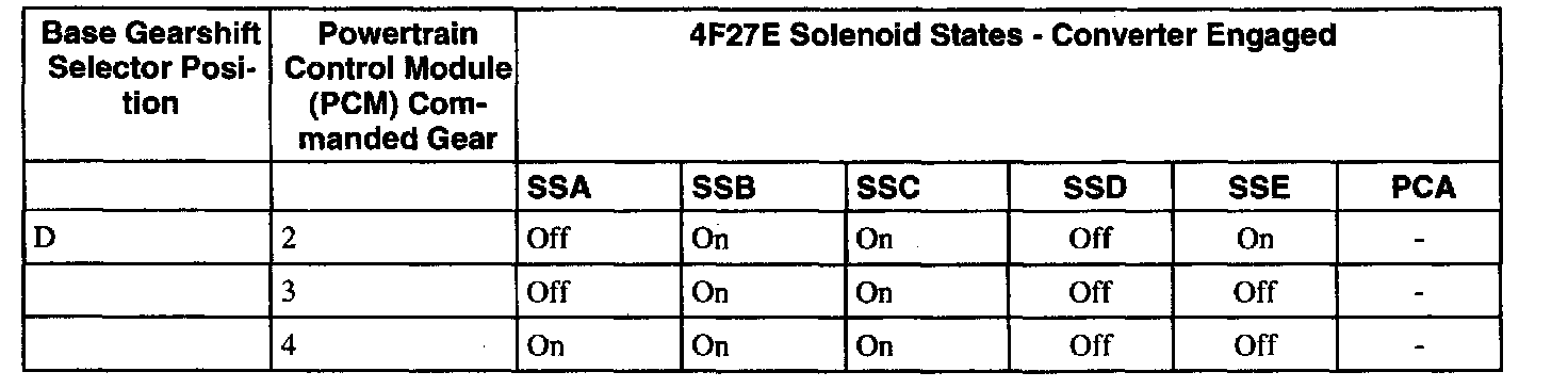 Solenoid Operation Chart - Converter Engaged