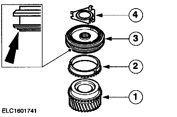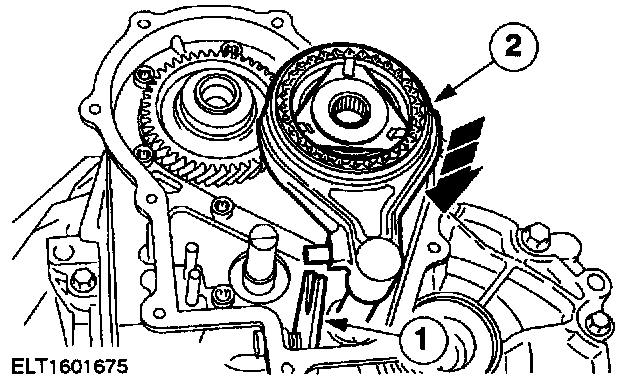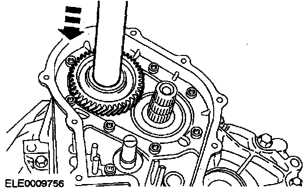 2. Push on the fifth gear synchronizer unit until it reaches the drive plate.