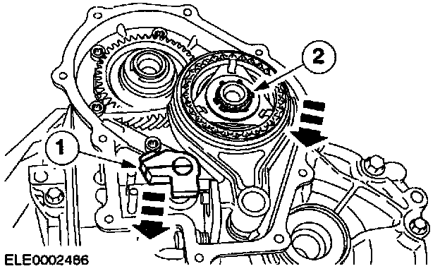 - Turn the selector shaft clockwise until the reverse/fifth gear passage is reached, then press downwards.
