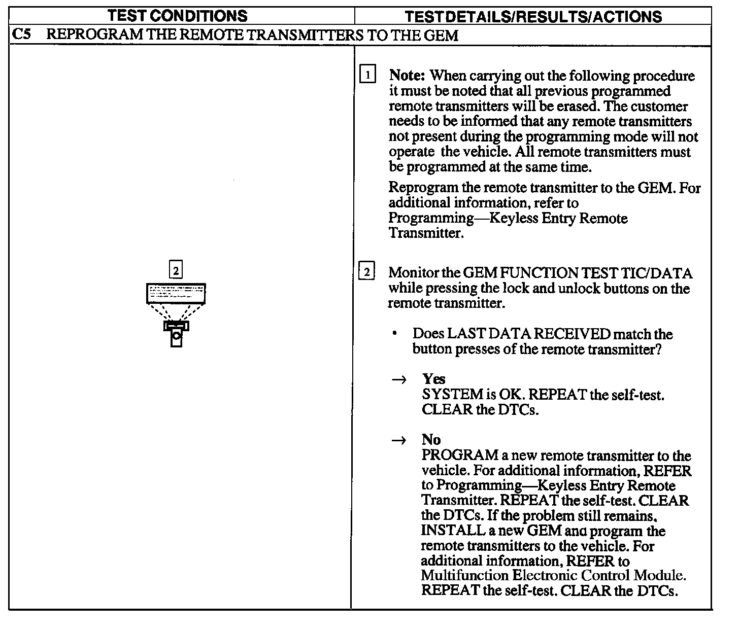 Test C: Doors Do Not Lock/Unlock Using the Remote Transmitter