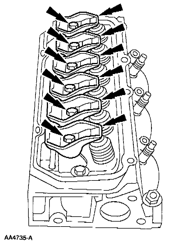 To install, reverse the removal procedure. Tighten the rocker arm bolts in two stages.