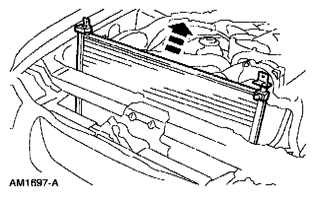 REMOVALNOTE: If an A/C condenser core leak is suspected, the A/C condenser core must be leak tested before it is removed from the vehicle.