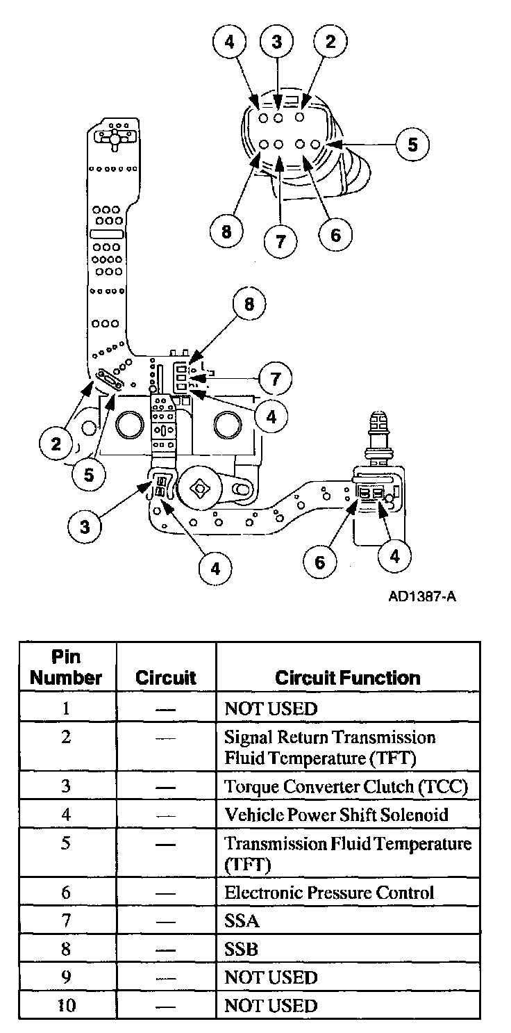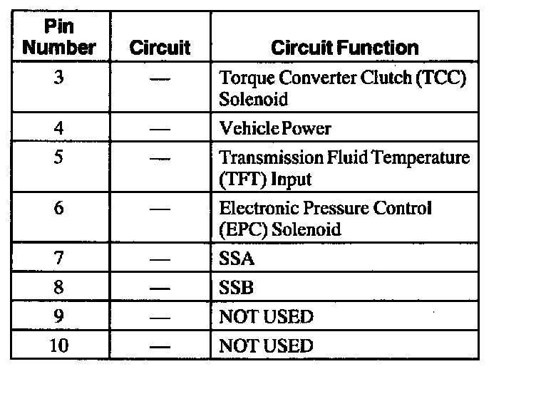 ^ TR4, TR3A, TR2, and TR1 are all open in Overdrive, so Overdrive is a good position to check for shorts to ground. To determine the shorted components while observing TR_D, unplug the TR and see if the short goes away. If the short is still present, unplug the transmission harness and see if the short goes away. If the short is still present, then the short is in the PCM or vehicle harness. Remove the suspect circuit(s) wire from the PCM vehicle harness. If the short is still present, then the PCM has an internal failure. Otherwise the failure is in the vehicle harness.