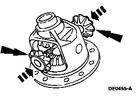 2. Lubricate the differential pinion thrust washers and the differential pinion gears, and assemble the washers to the gears.