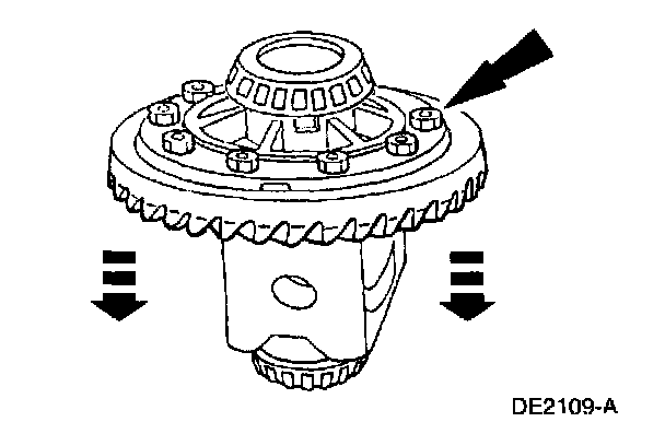 8. Remove the differential side gears and the differential side gear thrust washers.