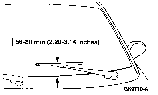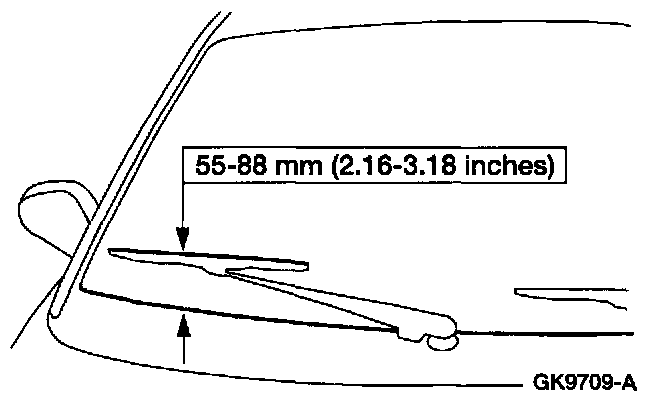 4. If the distance is not within specification, remove the windshield wiper pivot arms and reposition to specification.