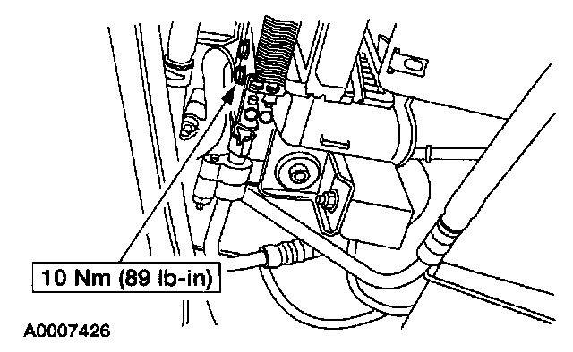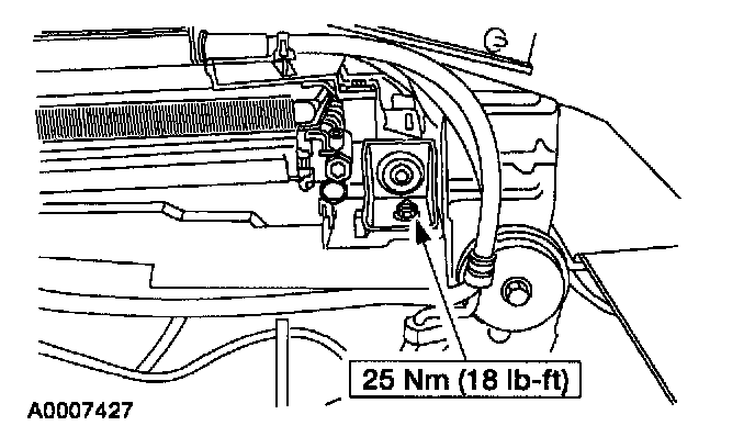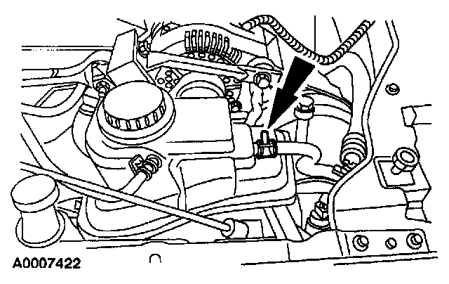 5. Using the special tool, disconnect the upper transmission cooler line.