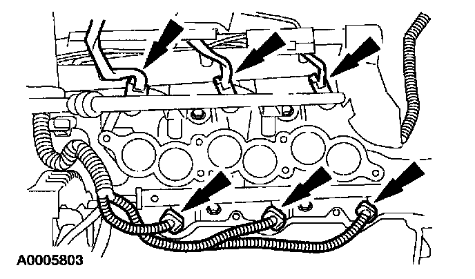 5. Disconnect the engine control sensor wiring harness from the fuel injectors.
