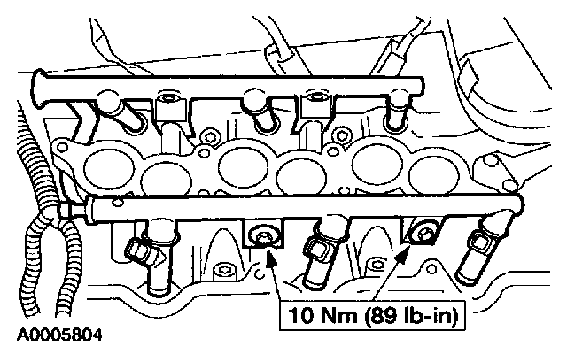 8. Install the fuel injection supply manifold and fuel injectors as an assembly.