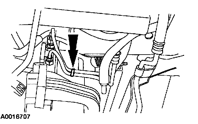 - Connect the fluid cooler tubes into the transaxle fitting until the plastic retainer engages the first tube bead. (A definite "click" should be heard.) Pull back on the line to verify full engagement.