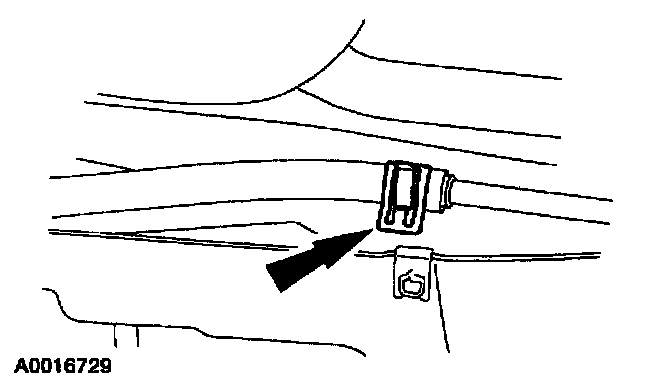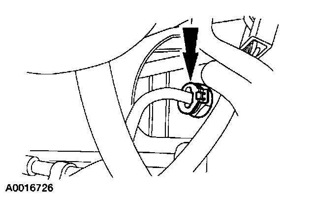 3. Remove the retaining clip from the outlet fluid cooler tube and transaxle fitting.