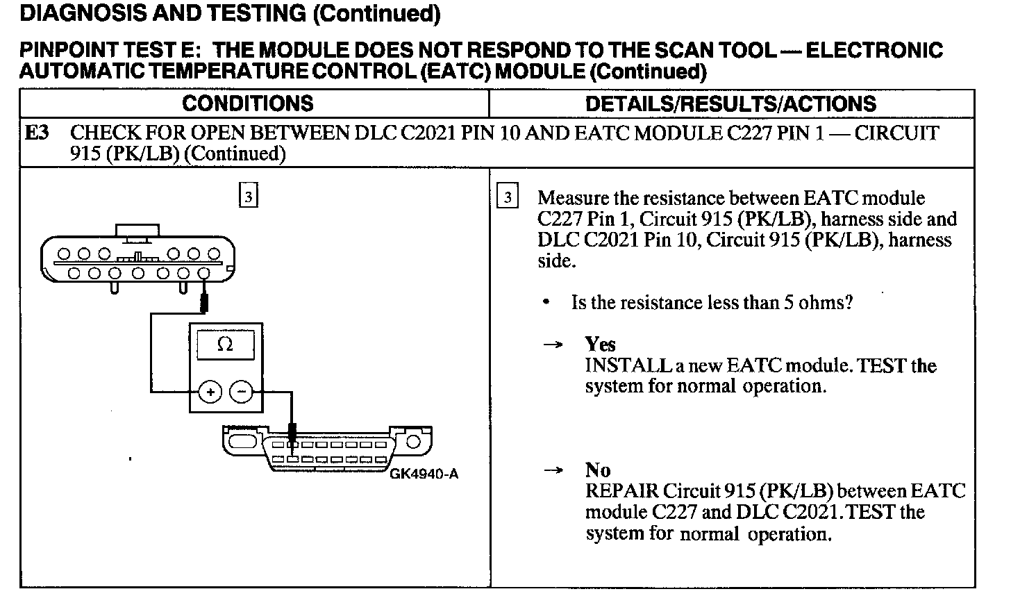 Test E: EATC Module Does Not Respond To The Scan Tool