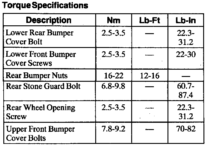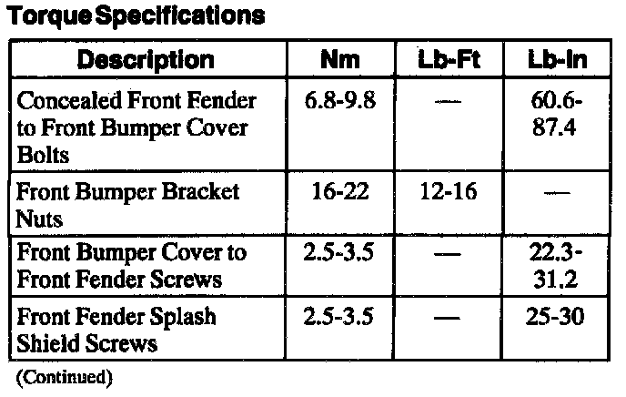 Torque Specifications (Part 1):