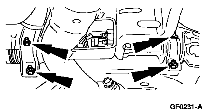 - To ease installation, loosen the front transaxle support insulator through bolt and transaxle insulator bolt.