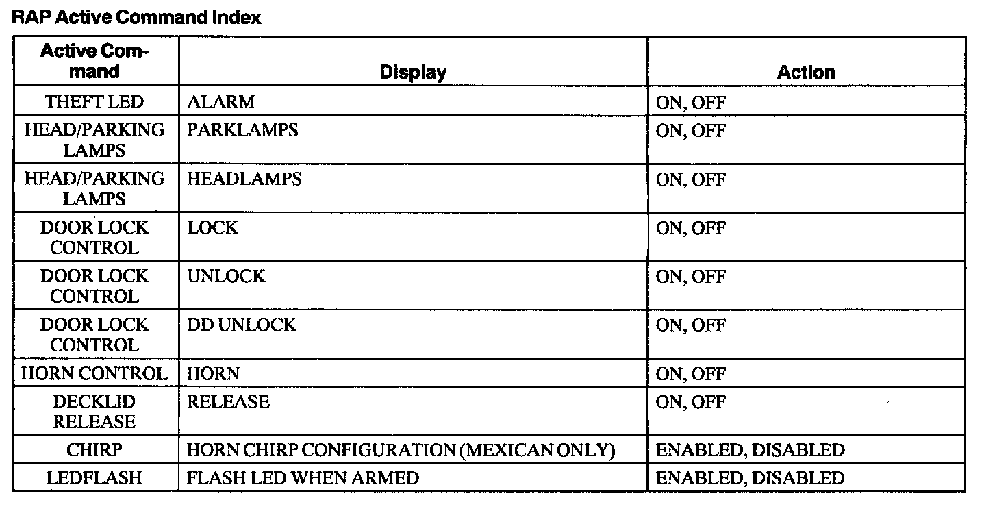 RAP Active Command Index: