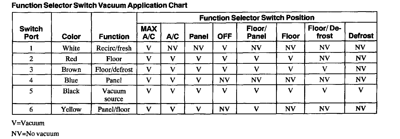 Function Selector Switch Vacuum Application Chart: