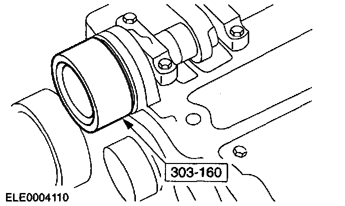 ^ Screw in Special Tool 303-574 and make sure that the crankshaft is resting against the special tool.