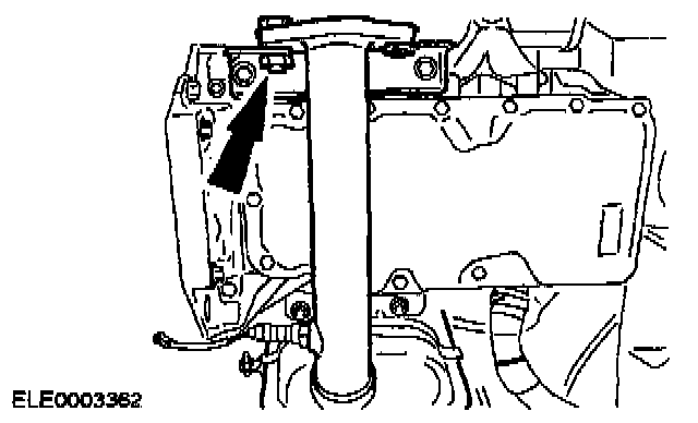 ^ Remove the temporary bolt from the rear catalytic converter bracket.