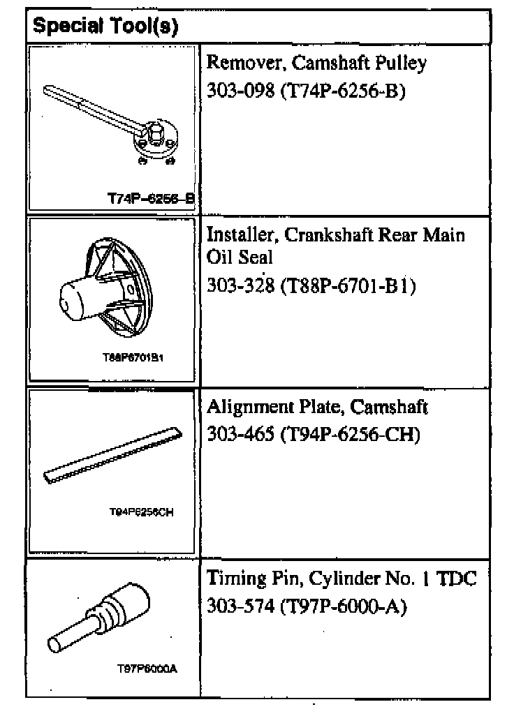 NOTE: Ford does not provide camshaft gear timing marks, or information to perform timing belt service without the special tools shown in this procedure.