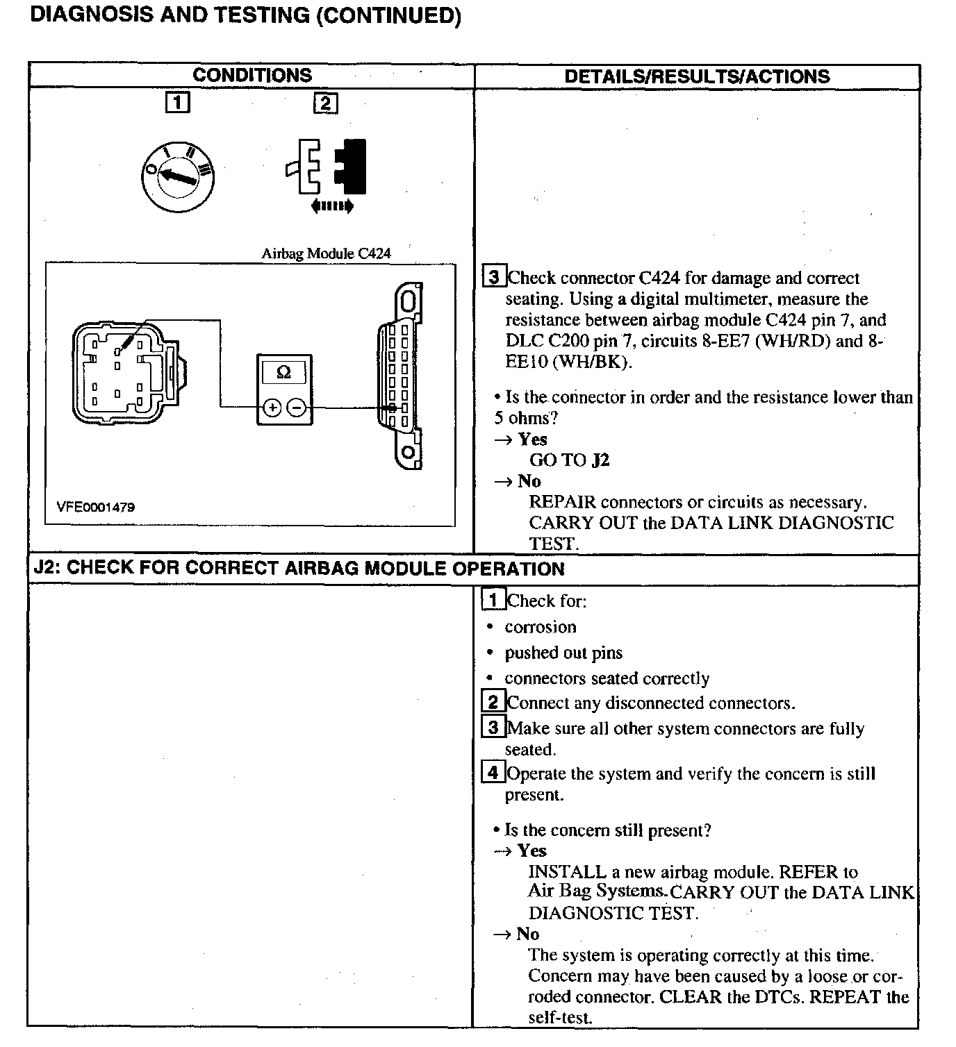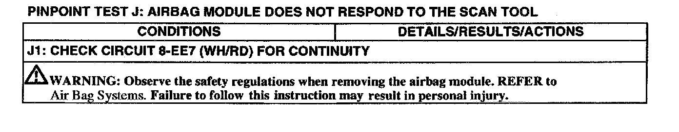 Test J: Airbag Module Does Not Respond to the Scan Tool