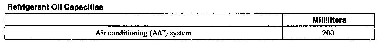 Refrigerant Oil Capacities: