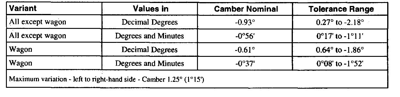 Front Wheel Alignment - Caster and Camber - At Curb Condition