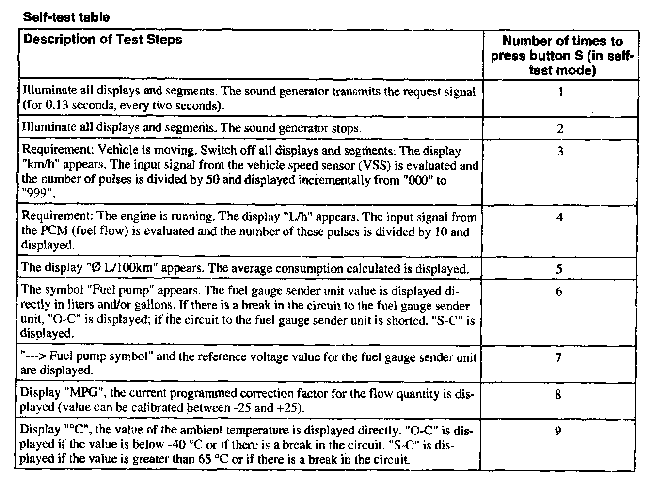 Self-Test Table