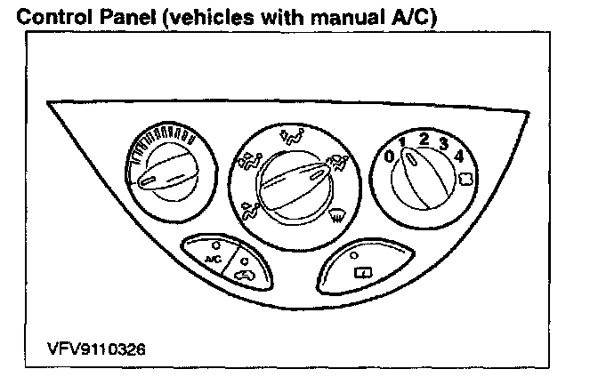 The only difference on the control panel for vehicles with air conditioning is the extra switch for the air conditioning system.