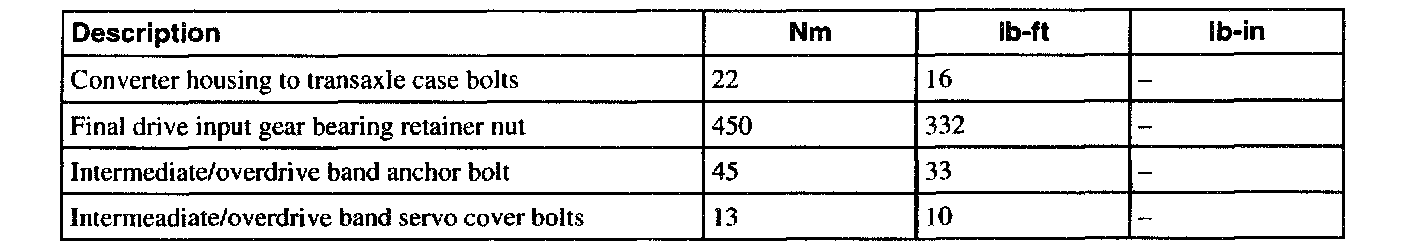 Torque Specifications