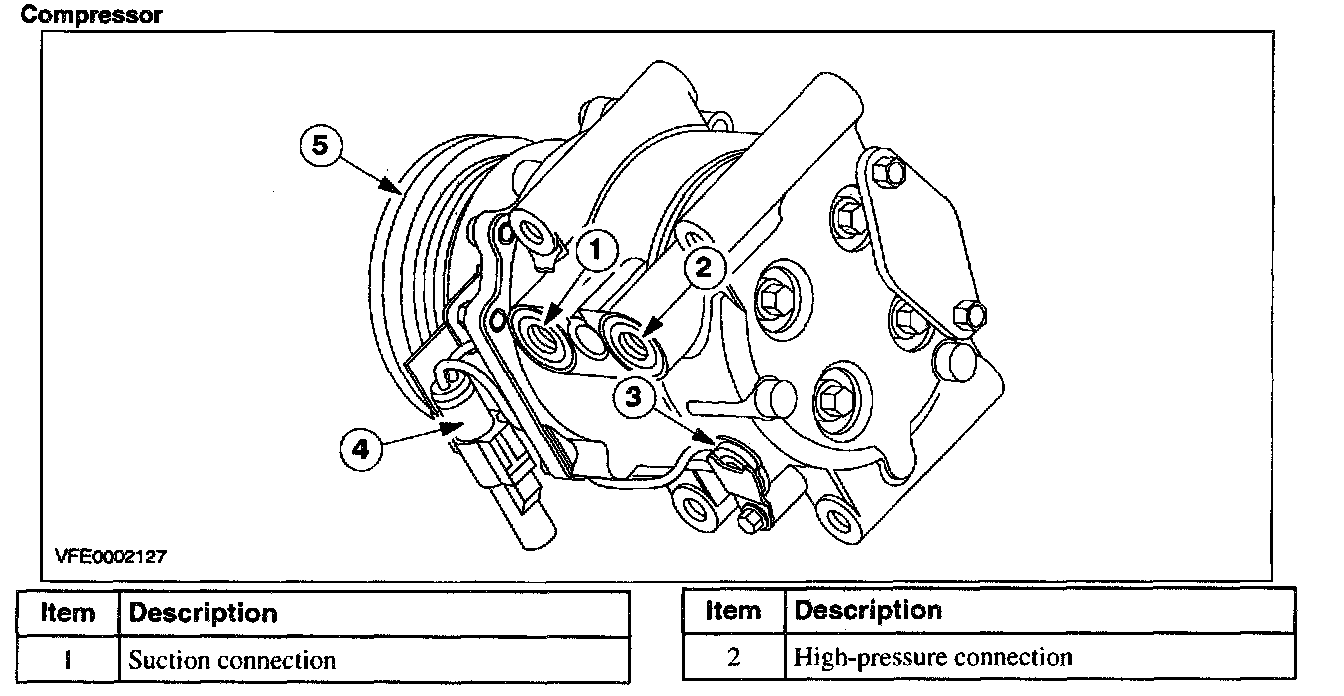 The compressor draws in cool refrigerant gas from the accumulator/dehydrator via the suction connection and forces it into the condenser.