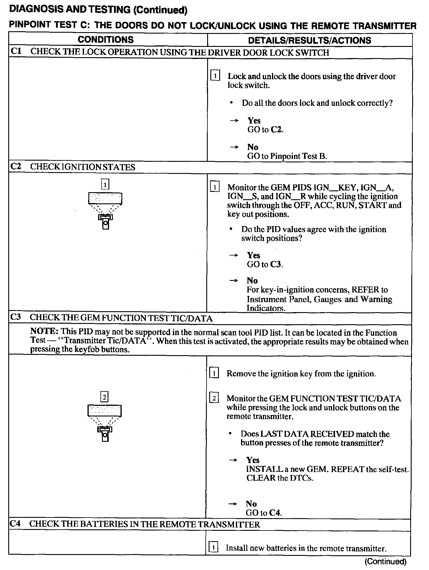 Test C: Doors Do Not Lock/Unlock Using the Remote Transmitter