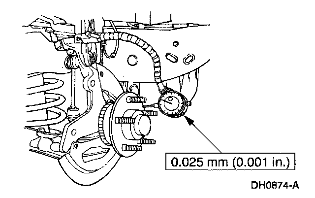10. Install a new front hub if the total indicated runout exceeds the maximum specification.