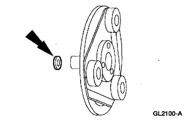 8. Measure and adjust the clutch air gap by removing or adding A/C clutch hub spacers.