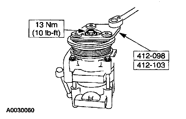 CAUTION: Do not use air tools. The A/C clutch field coil can be easily damaged.