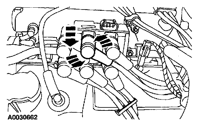 2. Twist while pulling upward to disconnect the spark plug wires from the ignition coil.