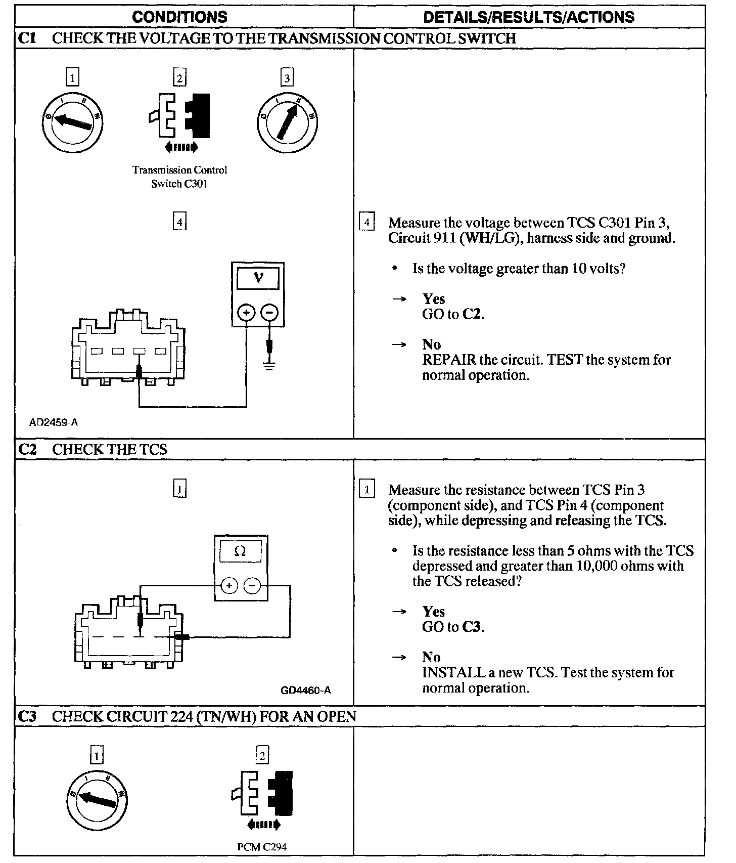 Test C: The Transmission Control Switch (TCS) Is Inoperative