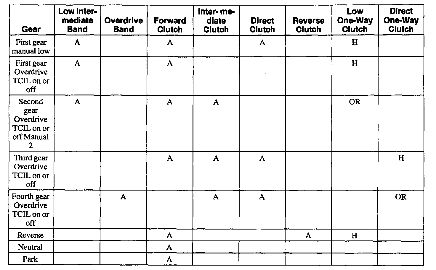Band and Clutch Application Chart