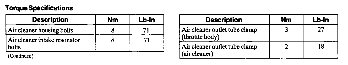 Torque Specifications:
