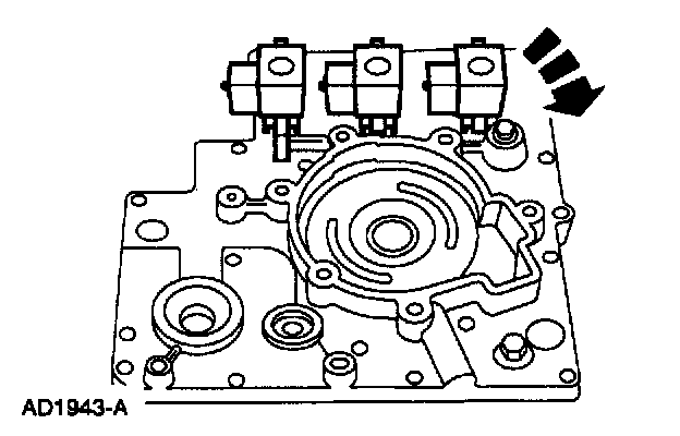 Install new O-rings and install the shift solenoids by pressing down and rotating them until they lock in place.