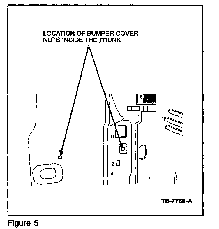 4. Remove/place aside the trunk trim on the sides and remove the four (4) rear bumper cover nuts in the trunk (two (2) on each side) (Figure 5 shows left hand side).