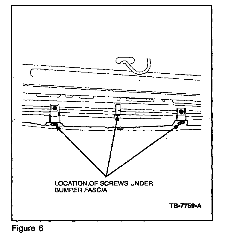 7. Remove the rear bumper cover screws from under the bumper fascia rear lip (two (2) or three (3) screws), (Figure 6) and the push pin type retainers from bottom sides of bumper cover (two (2) or three (3) on each side) (Figure 7), six (6) push pin-type retainers (three (3) on each side) in the wheel well at the leading edge of the bumper (Figure 8).