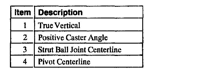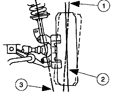 A backward tilt is positive (+) and a forward tilt is negative (-). Front caster adjustment is not a separate procedure on this vehicle. Front caster should fall within specification when the front camber is adjusted.