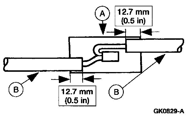5. Position the (A) heat shrink tube over the (B) wire repair.