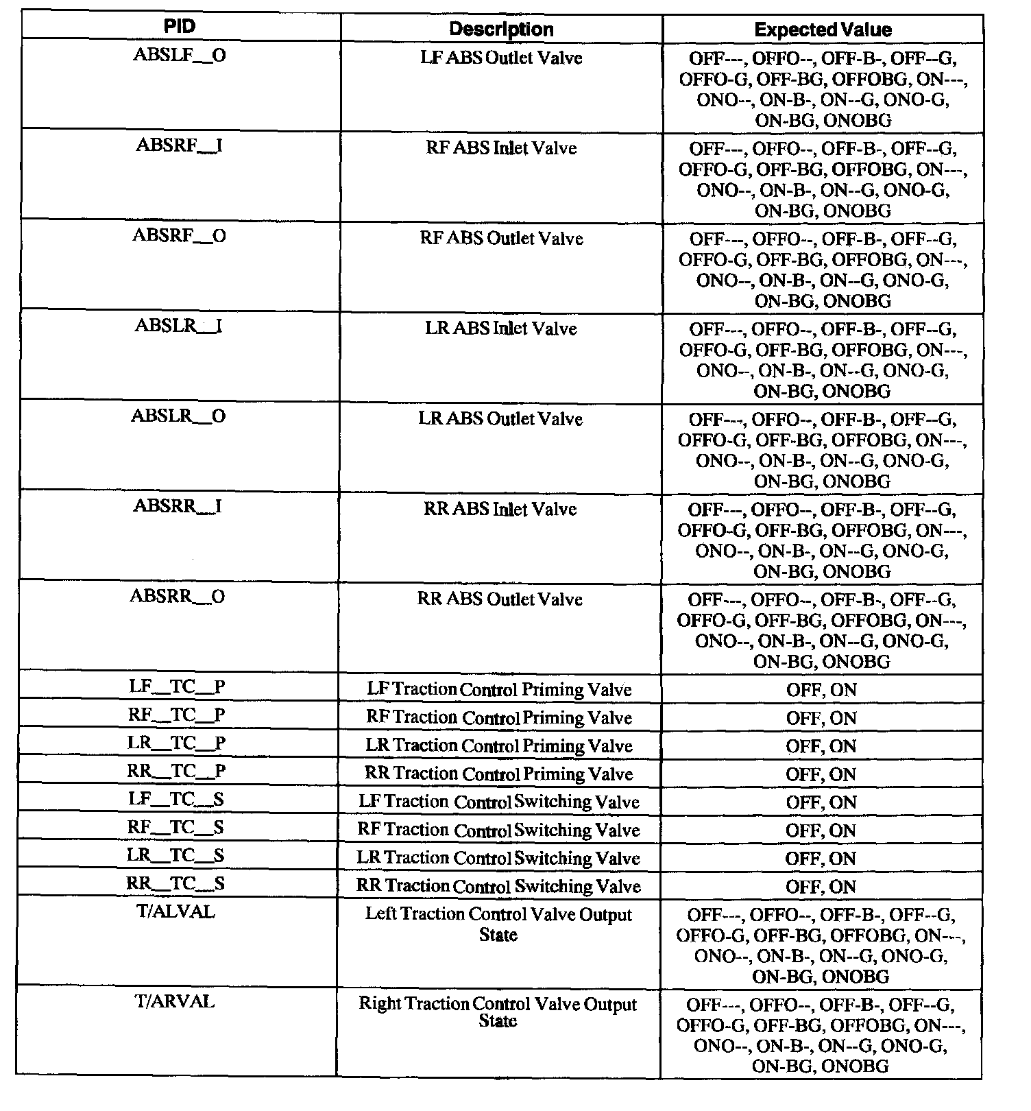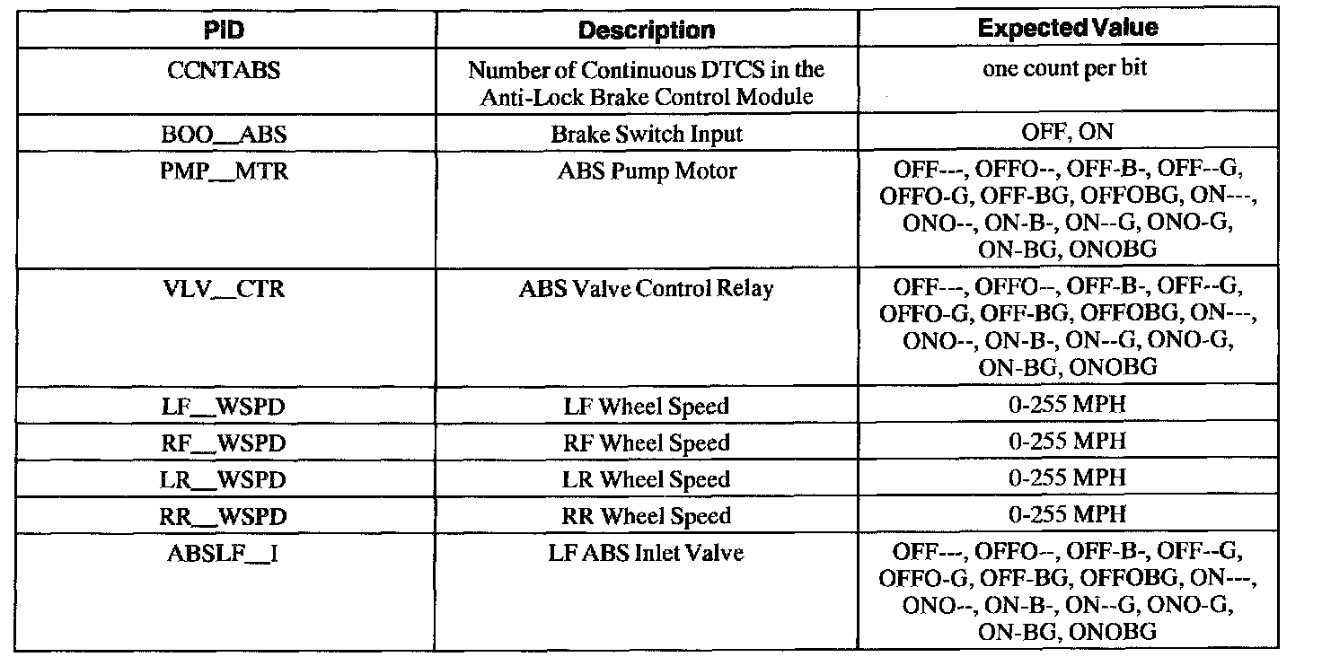Anti-Lock Brake Control Module Parameter Identification (PID) Index