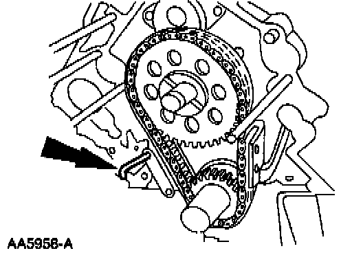 4. Compress and install a retaining pin to hold the timing chain tensioner.
