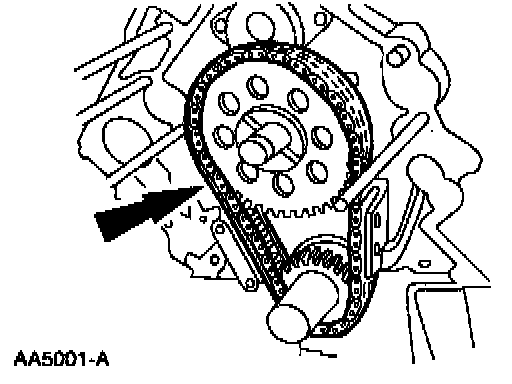5. Remove the camshaft sprocket, the crankshaft sprocket and the timing chain/belt as an assembly.