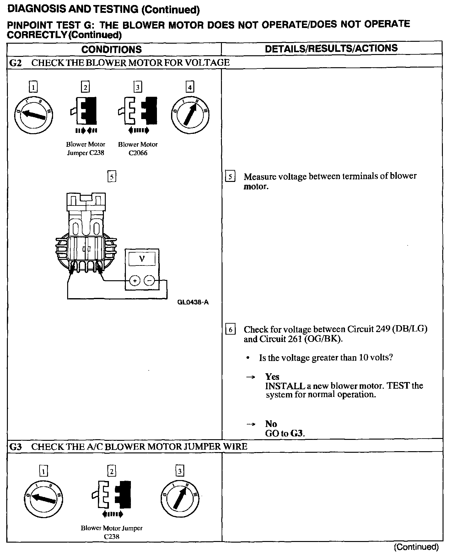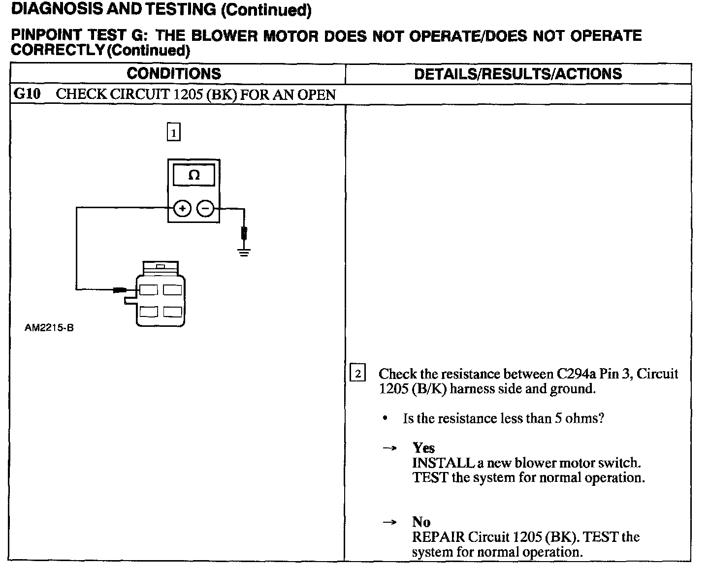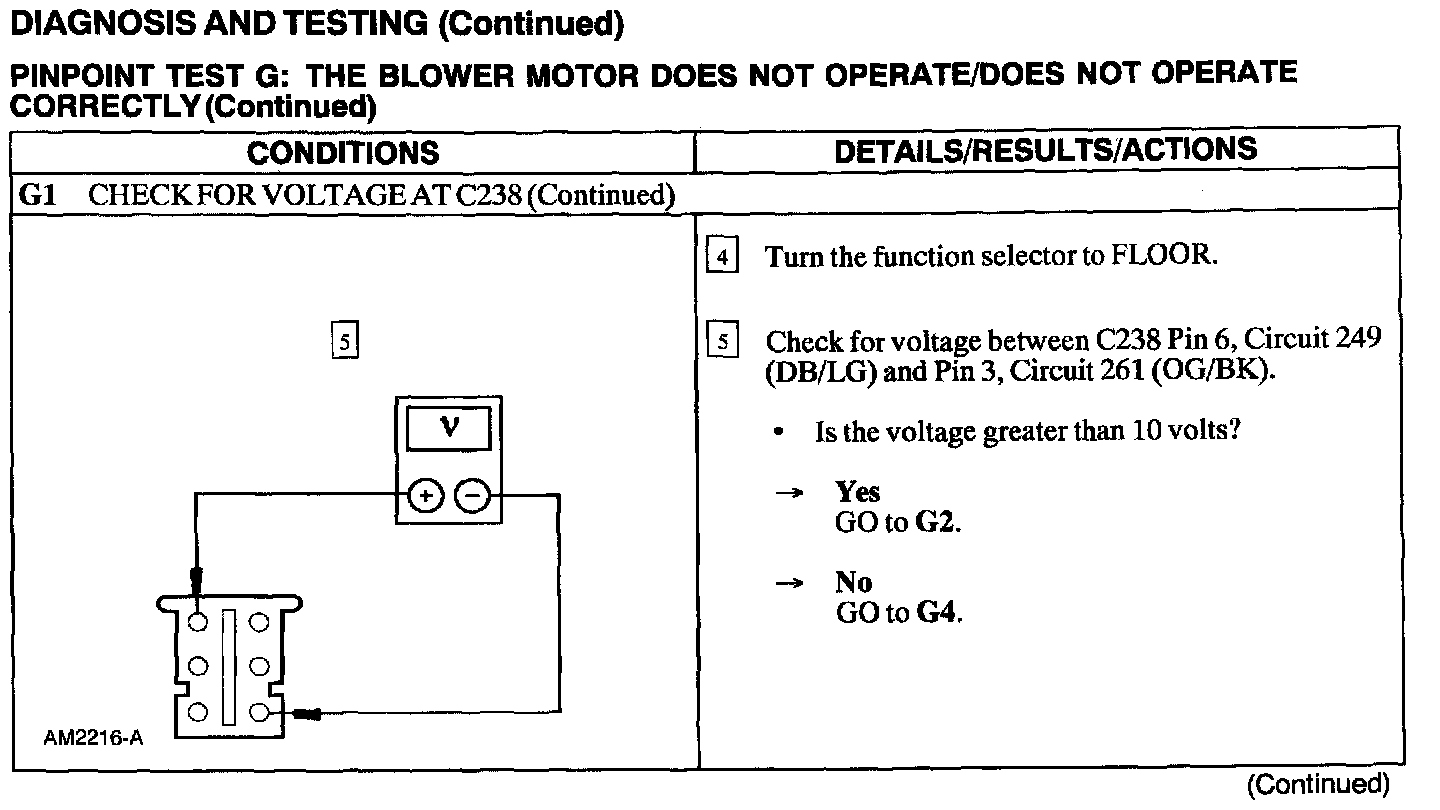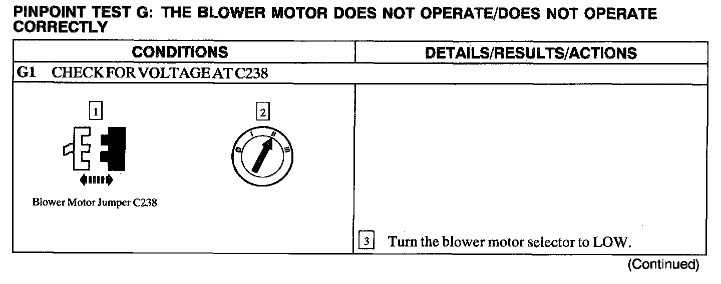 Test G: Blower Motor Not Operate/Does Not Operate Correctly